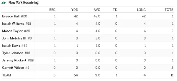 さらに この試合のジェッツのレシービングスタッツはこれ