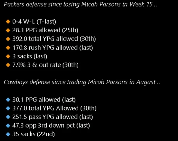 最後にパーソンズがカウボーイズとパッカーズにもたらした影響を具体的に表した投稿があるので貼っておきます。
