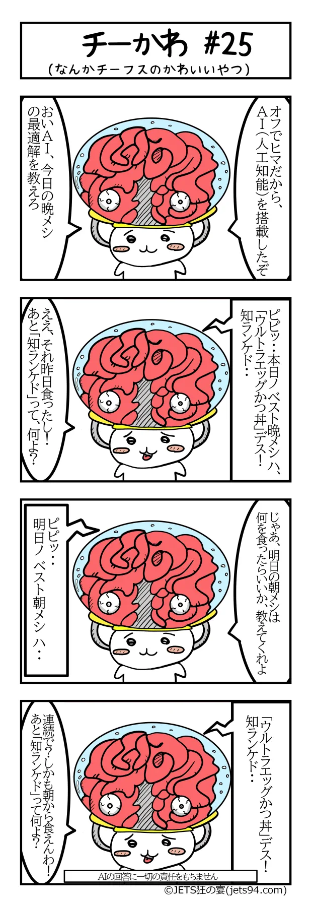 更新日:2026年4月8日 / 公開日:2026年4月8日 Topicsチーかわ マンガ 【WEBマンガ】チーかわ #25(マホームズのオフ4編) セミカラー版にしてみた [SPONSORED LINK] JETS狂先生のマンガが読めるのはジェッツ狂の宴だけ